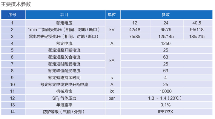OYH6-12/24/40.51250/25SF6全绝缘 金属封闭紧凑型断路器柜,是以SF6气 体作为绝缘介质,采用真空灭弧的高压 开关设备,主要作为三相交流额定电压 12/24/40.5kV,额定电流1250A及以下 的电力系统中,作为控制和保护设备,开 断和关合电力系统的额定电流、过载电流 及短路电流。